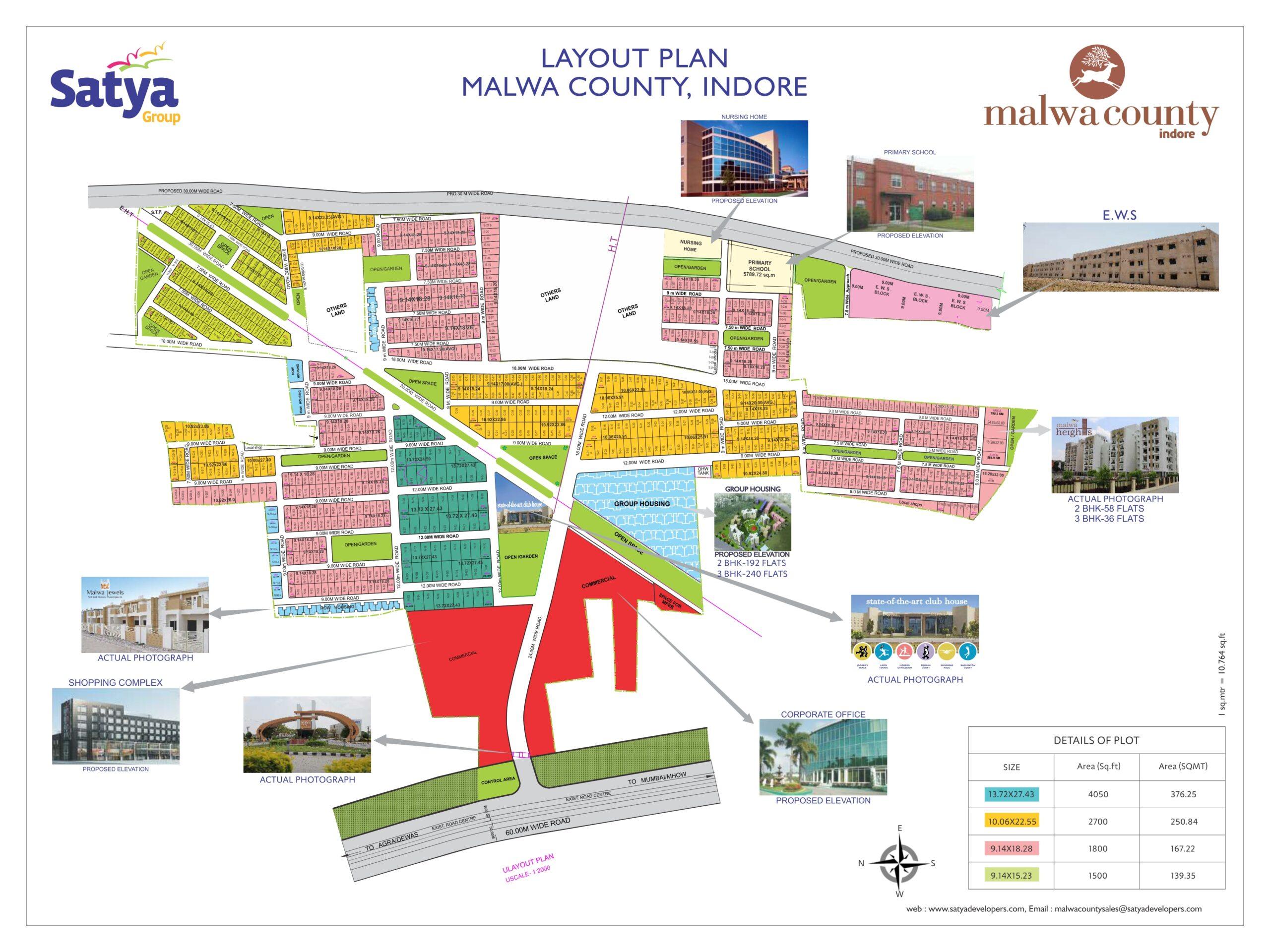 Explore the detailed map layout plan of Malwa County featuring plot dimensions, area specifications, infrastructure details, and comprehensive site planning for prospective buyers.